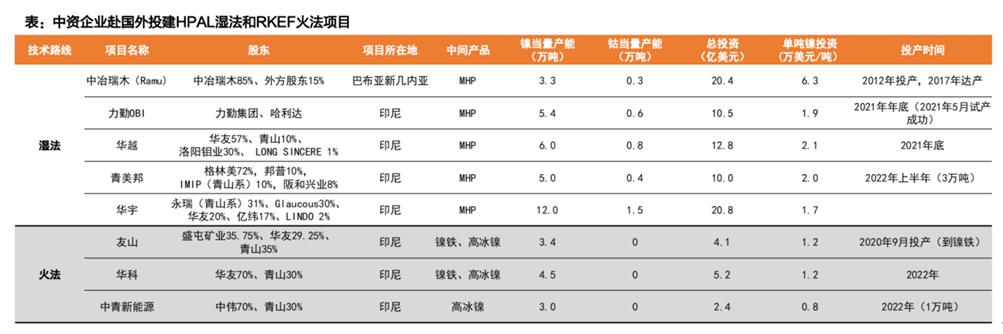通過一系列政策,倒逼外資企業在印尼當地建廠冶煉。在政策背景下,中資企業紛紛赴印尼建廠,同時與青山集團合作,打破印尼政策限制。