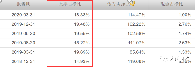 一般而言,債券基金的投資比例中,權益類投資不能超過20%;這只基金的倉位比例,差不多就一直卡在20%左右,算是一直“高位運行”: