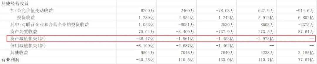 如下圖東方財富統計的數據,2021年榮盛發展資產減值損失-36.47億元,比往年要高數十倍。