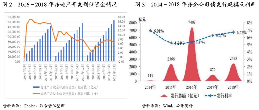 對房企而言,銷售回款是重要的資金來源,但在2018年銷售增速下滑、房價穩中有降的市場環境下,房企的資金壓力加大;另外,在“嚴格管控各類資金違規進入房地產市場”的指示精神下,房企融資難度不斷上升,融資成本明顯提高。同時,中小型房企區域布局相對下沉且集中,考慮到三四線城市調控政策也在密集出臺,中小型房企在銷售回款、外部融資、品牌和規模上均處于劣勢,受行業寒潮影響較大,易產生流動性危機。