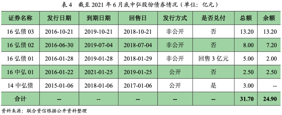 中弘控股股份有限公司(以下簡稱“中弘股份”)成立于2001年,為A股上市企業,旗下擁有三家境外上市公司,實際控制人為王永紅,主營業務為商業地產、文化旅游地產等核心物業開發與運營業務。中弘股份共發行5期債券,其中2期為公募債,3期為私募債,債券總額31.70億元。除2018年1月6日到期的“14中弘債”和2018年1月29日到回售日的“16弘債01”的回售金額兌付外,其余均違約,首個違約債券為2018年7月4日到回售日的“16弘債02”,截至2021年6月底,中弘股份違約債券本金余額24.90億元。