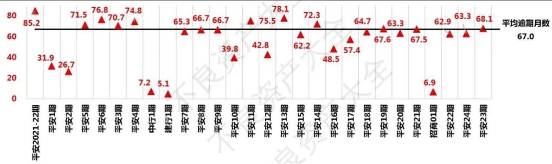 特別地,賬齡最短的三期為:建設銀行2022年第1期賬齡為5個月多,招商銀行2022年第1期賬齡為不到7個月,中國銀行2022年第1期賬齡為7個月多。有意思的是,這3期為1-4月28期中唯三不是平安銀行的不良資產,且賬齡都在半年左右。可見單從賬齡角度看的話,這三家銀行誠意十足。