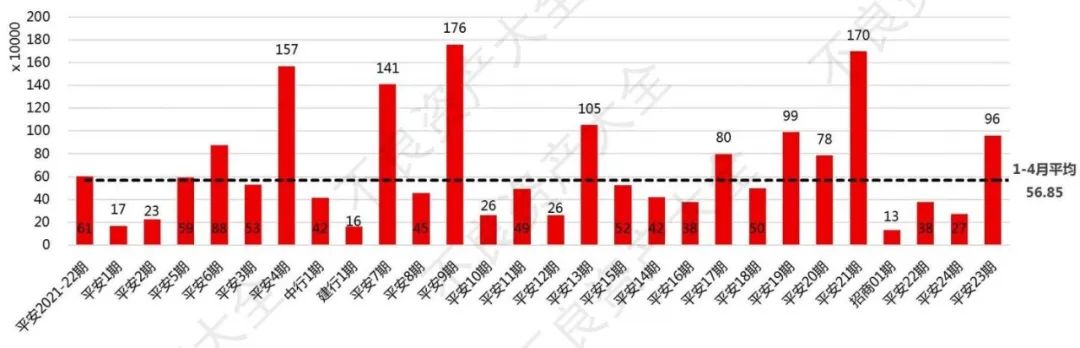 2022年1-4月成交的28期個貸不良子資產,每期戶數大致在200至300戶之間,平均每期502戶。