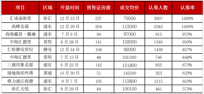 表:2020年上海典型低中簽率項(xiàng)目(套、元/平方米、人)