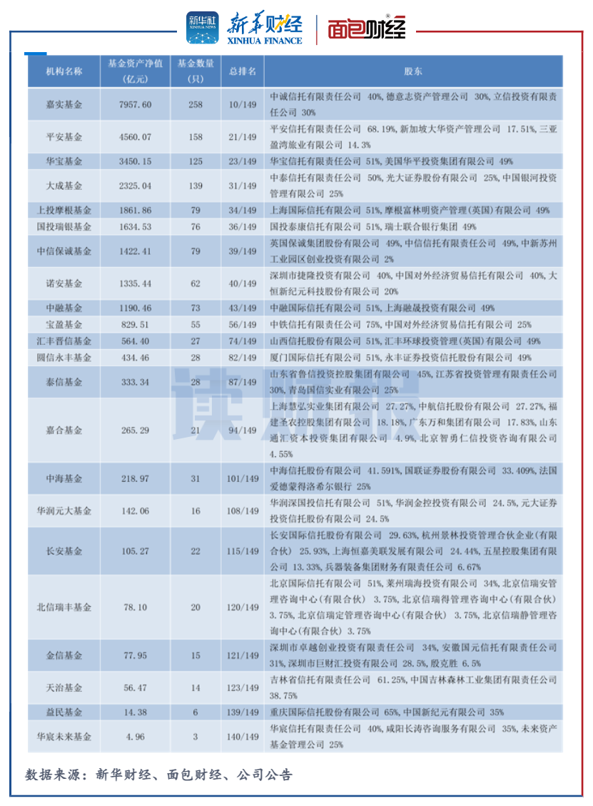資料顯示,北信瑞豐的前兩大股東為北京國際信托有限公司、萊州瑞海投資有限公司,各持有股份51%、34%,注冊資本為2億元。截至2021年末,北信瑞豐公募產品管理規模約78.1億元,總排名120/149,在22家信托系基金中規模也處于腰部以下。
