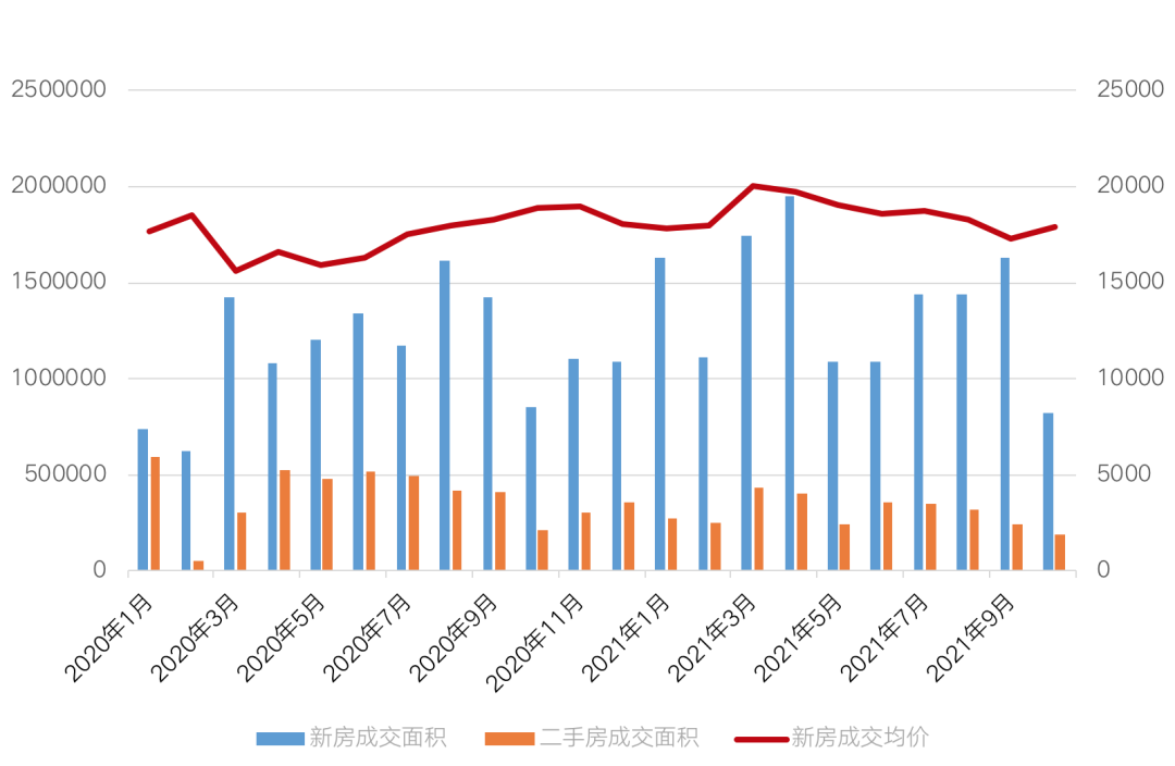 及新房成交均價變動情況(單位:萬平方米,元/平方米)