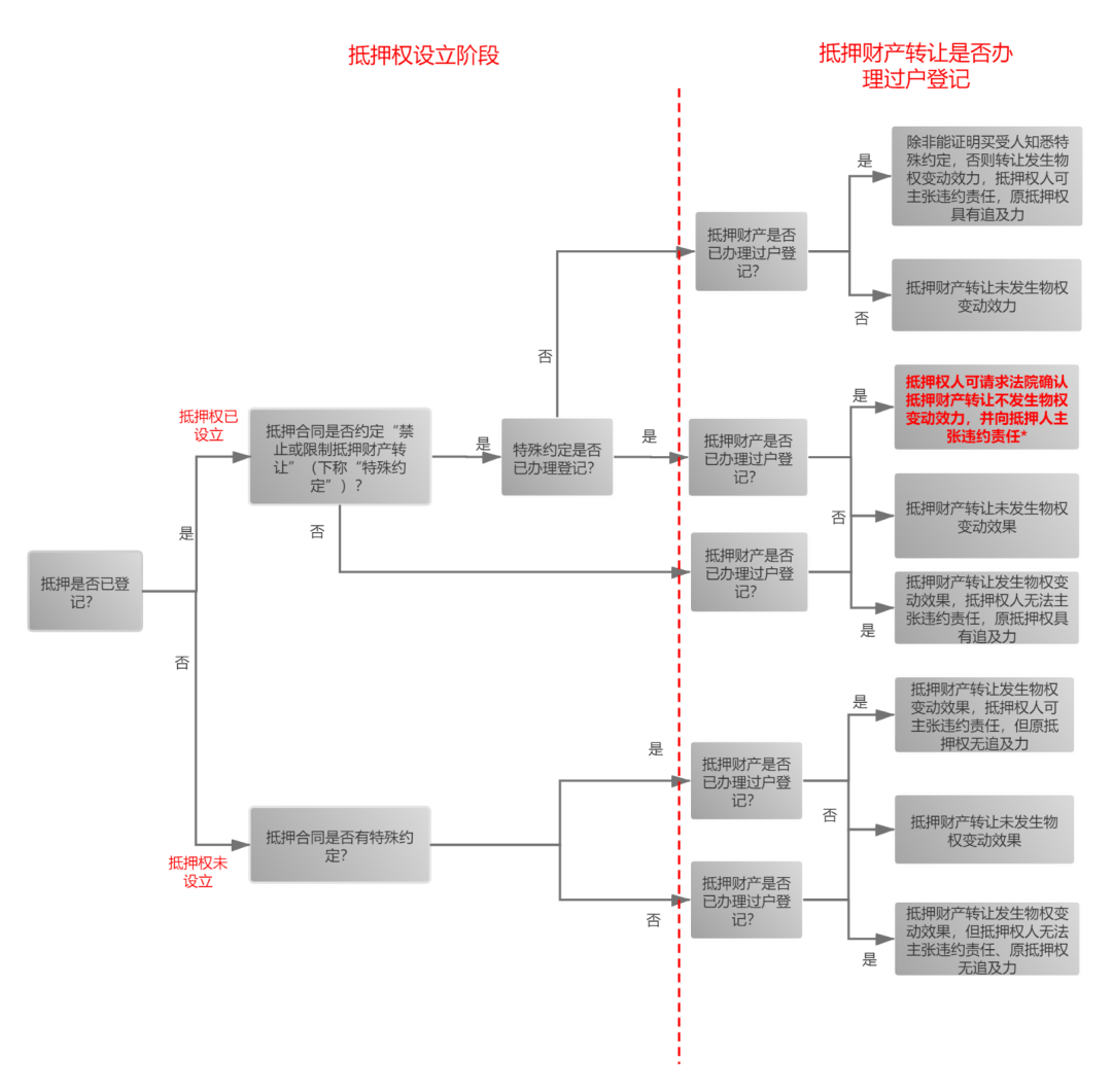 *(1)在特殊約定已辦理登記的情況下,抵押人應無法擅自辦理抵押財產過戶登記。但若已辦理過戶登記,抵押權人可以根據擔保制度司法解釋第43條規定,請求人民法院確認轉讓不發生物權變動效力,或以登記錯誤為由向登記機關提出異議;