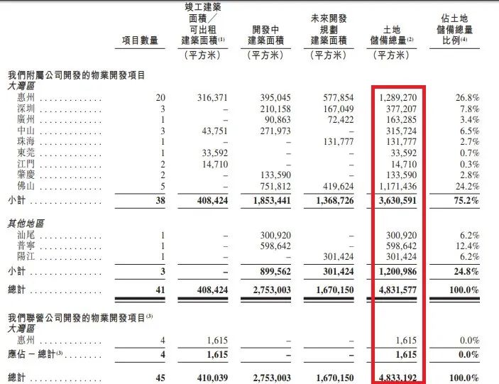 招股書介紹,主要在粵港澳大灣區(qū),截至8月末45個(gè)項(xiàng)目組合,覆蓋廣東省12個(gè)城市,其中4個(gè)項(xiàng)目通過一家聯(lián)營(yíng)公司開發(fā)。