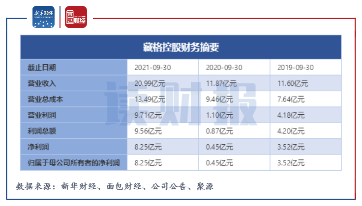圖1:2019-2021年前三季度藏格控股財務摘要