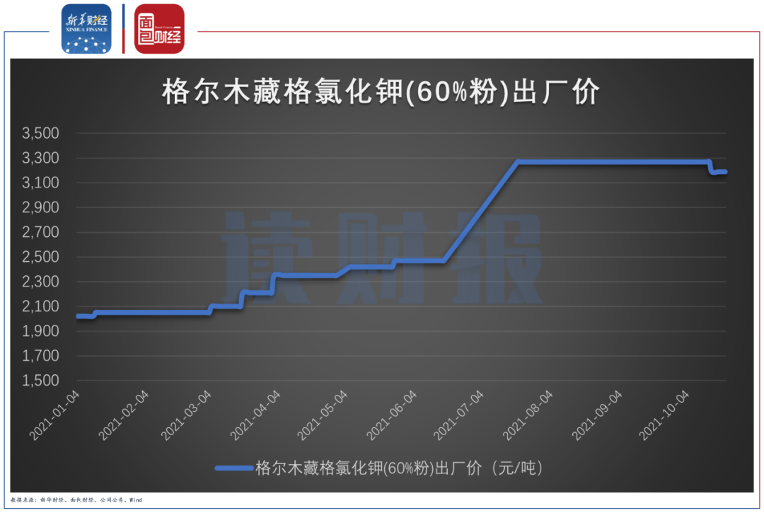 數(shù)據(jù)顯示,截至9月30日,藏格控股全資子公司格爾木藏格氯化鉀(60%粉)的出廠價為3270元/噸,較年初的2020元/噸相比增長了61.88%。2021前三季度藏格控股生產氯化鉀68.18萬噸,銷售66.75萬噸。
