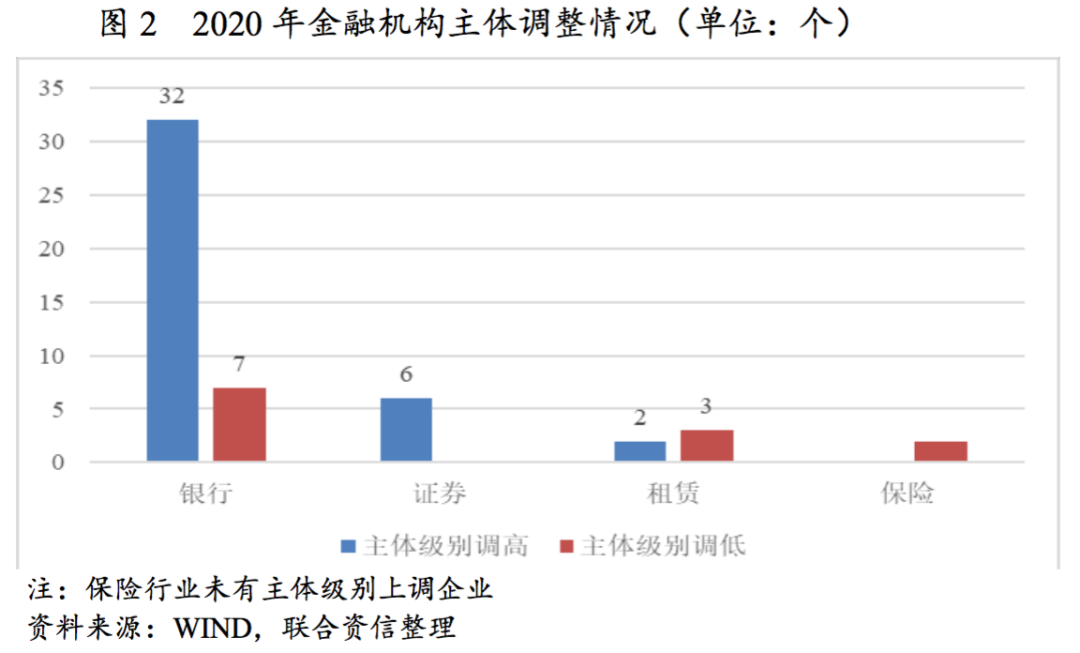 ?2020年商業(yè)銀行和證券公司債券發(fā)行量占金融債發(fā)行總量90%左右,證券公司債券融資規(guī)模占比有所上升;金融機(jī)構(gòu)主體級(jí)別上調(diào)主要多為股東增資或企業(yè)股東背景發(fā)生實(shí)質(zhì)性向好變化,級(jí)別下調(diào)主要多為股東結(jié)構(gòu)混亂導(dǎo)致經(jīng)營(yíng)出現(xiàn)困難、資產(chǎn)質(zhì)量惡化。