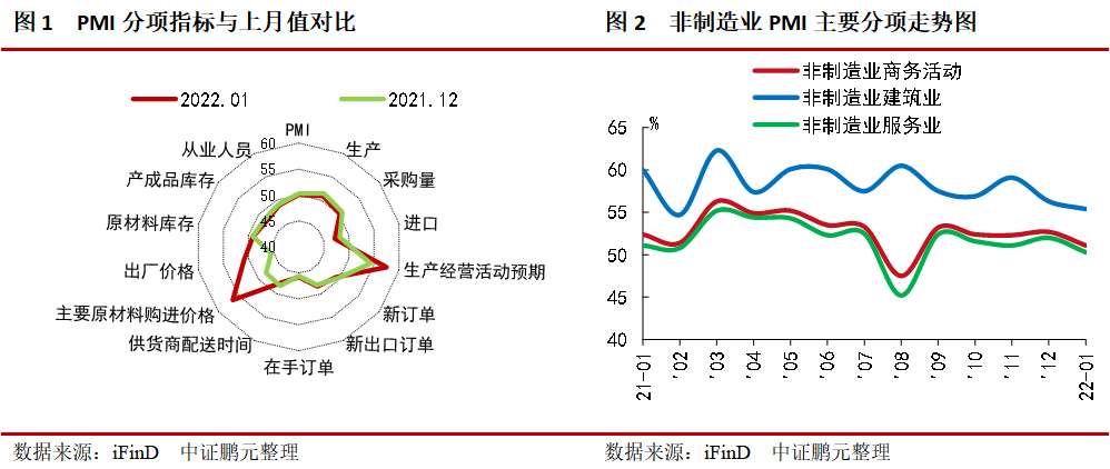 非制造業(yè)回落,服務(wù)業(yè)受疫情影響較弱、建筑業(yè)景氣季節(jié)性回落。非制造業(yè)商務(wù)活動、建筑業(yè)、服務(wù)業(yè)指數(shù)為51.1%、55.4%、50.3%,分別較上月回落1.6個百分點、0.9個百分點、1.7個百分點。服務(wù)業(yè)受國內(nèi)疫情反復(fù)繼續(xù)影響。建筑業(yè)季節(jié)性回落,主要受雨雪天氣及春節(jié)臨近工人陸續(xù)返鄉(xiāng)等因素,施工進(jìn)度放緩。