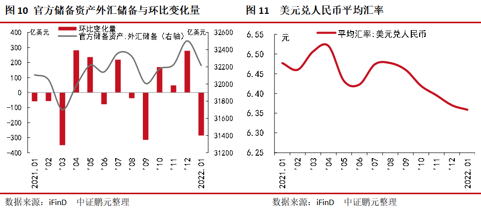 2月7日,國家外匯管理局?jǐn)?shù)據(jù)顯示,截至2022年1月末,我國外匯儲備規(guī)模為32,216億美元,較2021年末下降285億美元,降幅為0.88%。1月,美元兌人民幣平均匯率為6.36,連續(xù)6個月小幅回落。