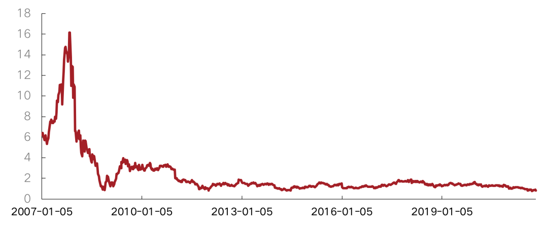 圖:克而瑞內房股領先指數PB估值走勢持續下行