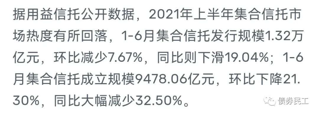 不斷提高的信托資產風險率,將會提高信托公司的項目審核標準和增信措施要求,對于部分網紅區域實現限制性措施,在實際上會提高融資類信托產品增加的難度,進而減少企業通過信托進行融資的可行性,很可能會形成一個非良性循環。 集合類信托主要是以融資類信托為主,而根據用益信托的統計數據,2021年上半年集合信托發行規模環比同比下降了19.04%;成立規模同比減少了32.50%!