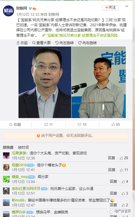 因?yàn)榻?jīng)營(yíng)理念不同,姚氏兄弟已在2018年分開做地產(chǎn),如今徹底“分家”或許因?yàn)椤霸燔嚒睂?duì)矛盾的深入激化。