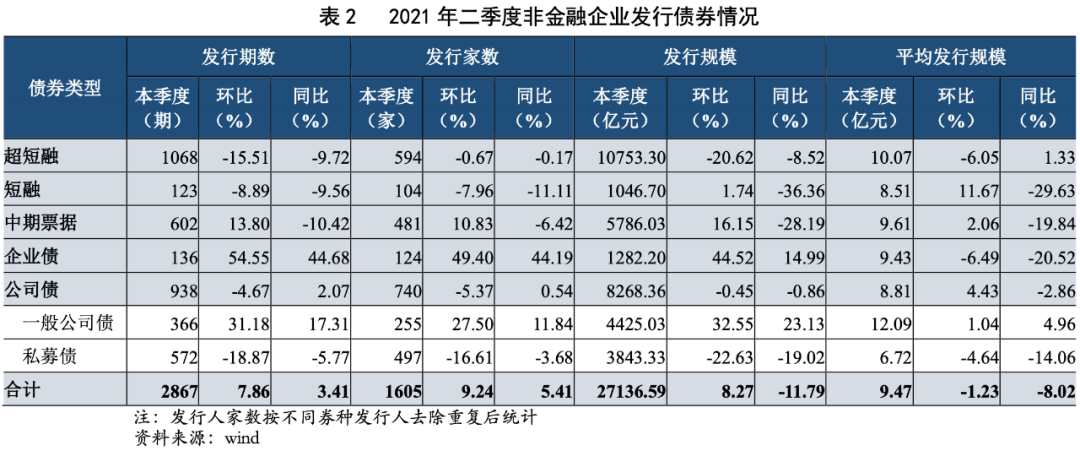 本季度,非金融企業所發債券[1]的發行家數、發行期數和發行規模環比均有8%左右的增幅,信用債發行量在二季度繼續回暖。具體來看,企業債和一般公司債發行量環比增幅顯著,其次為中期票據,其他券種發行量環比有所下降。非金融企業所發債券同比變化不一,發行期數和發行家數同比均有3%以上增幅,發行規模同比有所下降。其中,短融、中期票據的發行規模同比下降顯著。一季度平均發行規模為9.47億元,環比和同比均有下降。