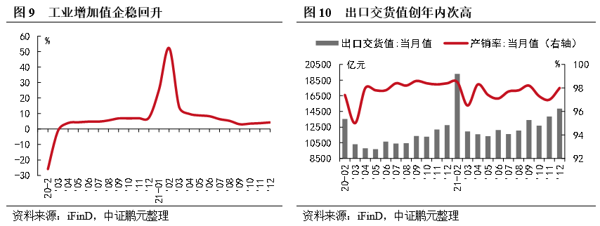 五,冬季保供穩(wěn)價(jià)政策持續(xù)顯效,12月工業(yè)生產(chǎn)繼續(xù)回暖,高技術(shù)制造業(yè)和出口繼續(xù)維持高增長。