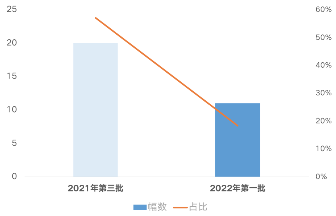 圖:杭州22年首次集中土拍出讓地塊中心城區(qū)地塊占比與21年第三批對比(按幅數(shù))