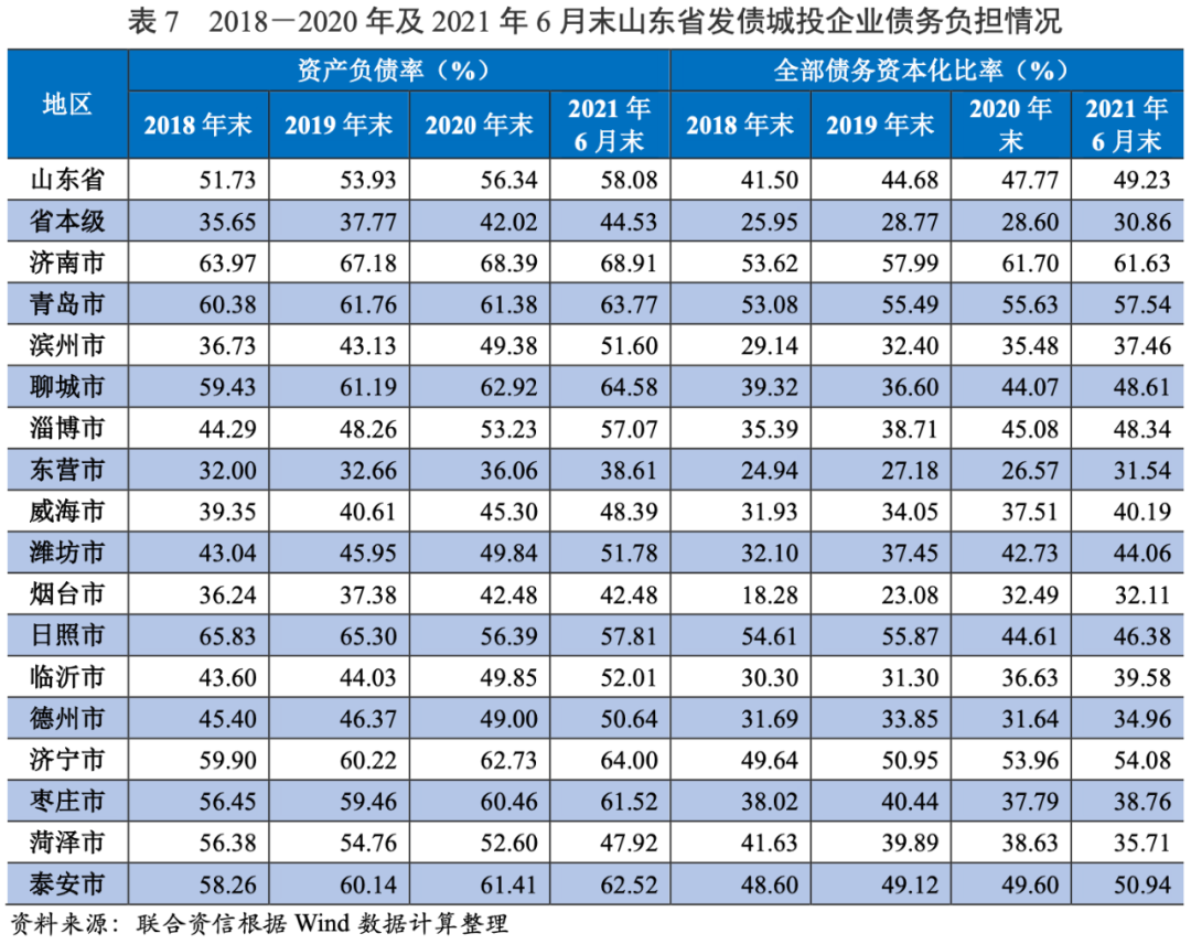 2.山東省城投企業債務負擔與償債能力分析