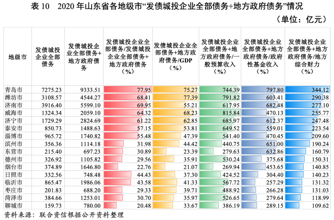 3.山東省各地級市財政收入對發債城投企業債務的支持保障能力