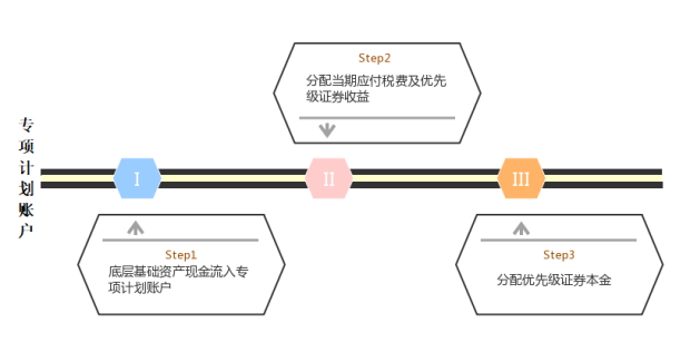 需要說明的是,在消費金融類ABS的專項計劃賬戶一般不區分本金賬戶和收益賬戶。與對公信貸ABS和對公融資租賃ABS不同,消費金融類ABS基礎資產的回款頻率高,回款分布較為均勻,一般不會出現某個期間內基礎資產回款金額過少而導致不足以支付證券收益的情況。