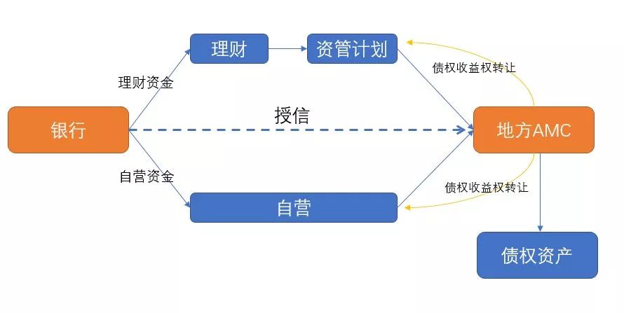 這類模式主要是打監(jiān)管規(guī)則的擦邊球,首先是繞開了銀監(jiān)2014年127號文的限制,即地方AMC不屬于金融機構(gòu),所以銀行可以與地方AMC就這類非標(biāo)資產(chǎn)開展買入返售業(yè)務(wù);此外也繞開了銀監(jiān)辦發(fā)[2016]56號的規(guī)定,該辦法明確要求AMC(包括地方)收購銀行業(yè)金融機構(gòu)不良資產(chǎn)實現(xiàn)資產(chǎn)和風(fēng)險的真實、完全轉(zhuǎn)移,但是此類模式屬于地方AMC向銀行轉(zhuǎn)讓資產(chǎn)。