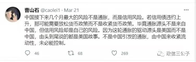 曹山石發(fā)了twitter,提示未來幾個月最大的風險是信用風險。