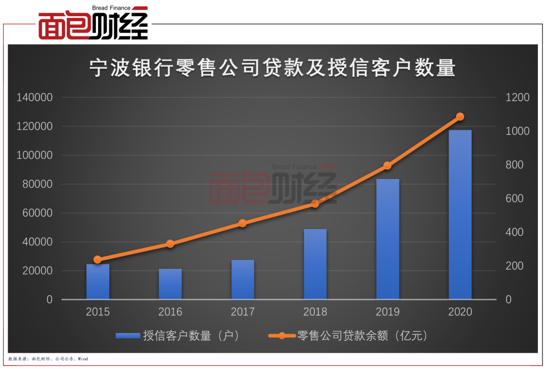 報告期內,寧波銀行持續推進“211”工程和“123”客戶覆蓋率計劃。截至2020年末,該行對公客戶總數46萬戶,較上年末新增7.7萬戶,其中90%以上都是小微和民營企業。個人客戶數量為1211萬戶,較上年末增加145萬戶,增幅為14% 。