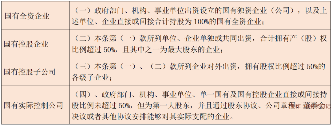 32號(hào)令對(duì)監(jiān)管對(duì)象做了明確規(guī)定,主要有三類:“國(guó)有獨(dú)資企業(yè)”、“國(guó)有控股企業(yè)”、“國(guó)有實(shí)際控制企業(yè)”。