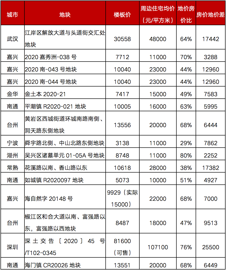 典型高熱地塊中,大部分地塊地價房價比低于70%,盈利問題不大。