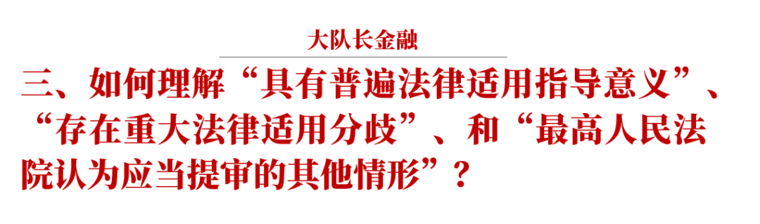 再審審查之后,最高人民法院決定提審的要求更高,需要滿足:(1) 具有普遍法律適用指導(dǎo)意義的;(2) 最高人民法院或者不同高級(jí)人民法院之間近三年裁判生效的同類(lèi)案件存在重大法律適用分歧,截至案件審理時(shí)仍未解決的;(3) 最高人民法院認(rèn)為應(yīng)當(dāng)提審的其他情形。