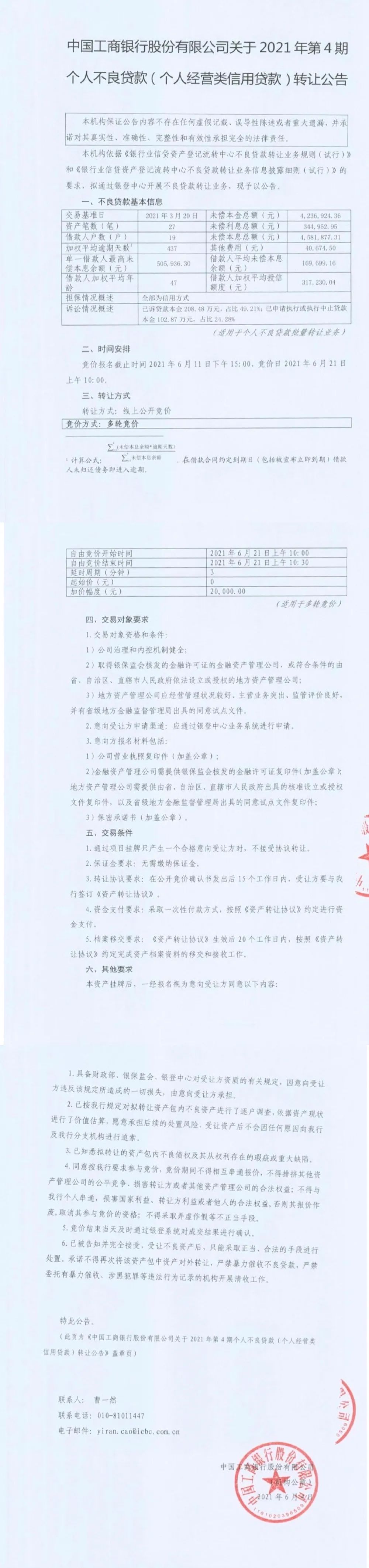 附工行2021年第4期、第5期個人不良貸款轉讓公告: