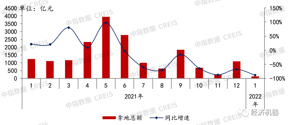 圖4 2021-2022年50家代表房企每月拿地總額