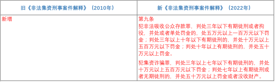 自2021年3月1日開始實施的《中華人民共和國刑法修正案(十一)》(以下簡稱“《刑修(十一)》),分別對非法吸收公眾存款罪與集資詐騙罪作出了重大修改,而為與《刑修(十一)》的修改相銜接,新《非法集資刑事案件解釋》亦作出了相對應(yīng)的修訂。