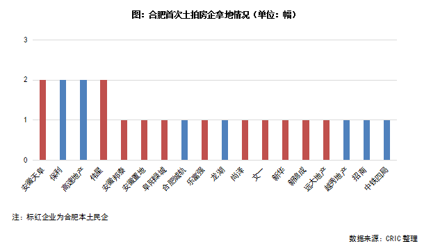 整體來看,本土民企在合肥本次土拍中成為了最大贏家,總體成交的22宗商品住宅地塊中有一半以上被本土民企競得,民企投資積極性的復蘇,也說明了對合肥市場前景的看好。在本土民機積極拿地的情況下,保利、龍湖、招商等品牌房企在積極參拍的情況下也僅有1-2宗地入賬,且還有華潤、中海、金茂等龍頭房企積極參拍卻無地入賬。
