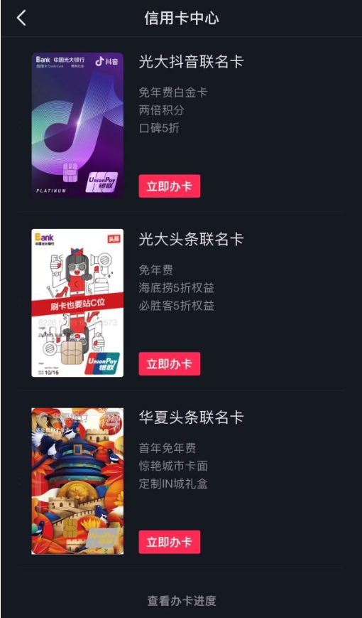 一是在拓展銀行合作伙伴方面,抖音支付支持綁定農(nóng)業(yè)銀行、建設(shè)銀行、中國(guó)銀行、郵儲(chǔ)銀行、交通銀行、招商銀行等銀行的銀行卡。此外,抖音與光大銀行和華夏銀行聯(lián)合推出聯(lián)名信用卡,逐步提升品牌知名度。