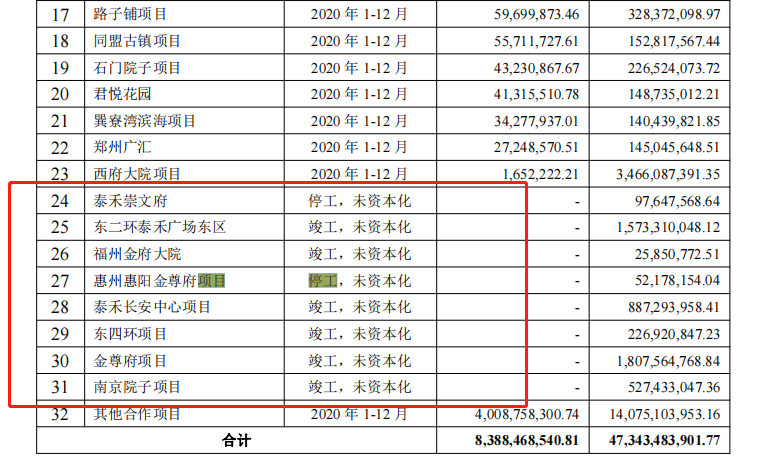 而在自由資金的項目中,泰禾僅提及了2個項目是停工的(崇文府和惠州惠陽金尊府)。此前一年,泰禾住宅項目因債務問題停工,也多有媒體報道。