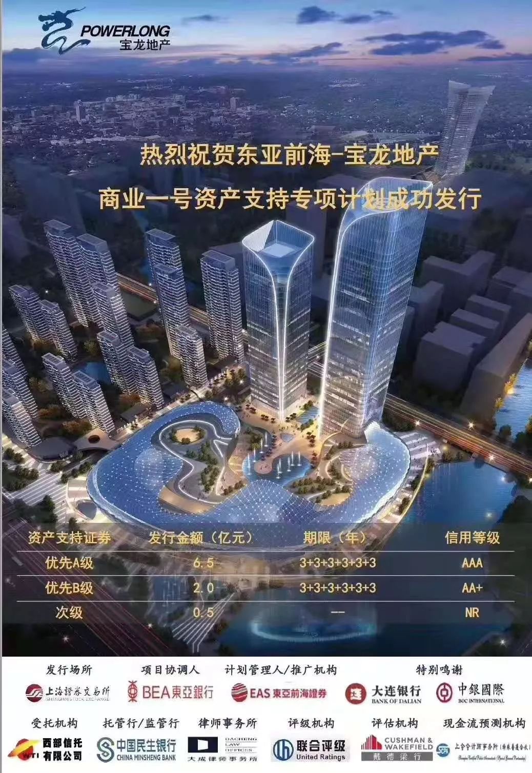 近日,由東亞前海證券擔任計劃管理人的“東亞前海-寶龍地產商業1號資產支持專項計劃”于上交所成功發行,規模9億元。項目發行人為上海寶龍實業發展(集團)有限公司,東亞銀行擔任項目協調人。這是繼寶龍地產在供應鏈資產證券化嘗試后的又一突破,有利于優化寶龍地產資產負債結構,創新融資模式,提高資金使用效率。