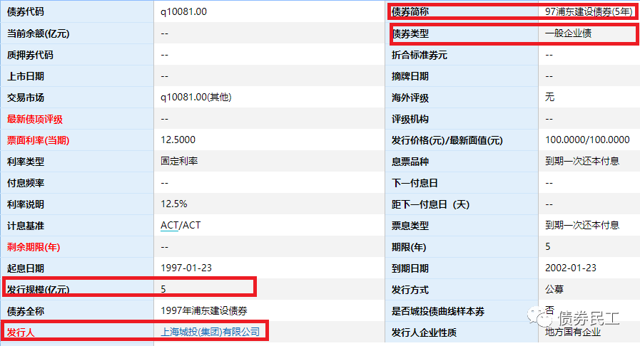 如果按照時間往后查詢,最早能查詢到的浦東建設債券是上海城投(集團)有限公司(公司原名為上海市城市建設投資開發總公司,成立于1992年)于1997年發行的“97浦東建設債券(5年期)”,發行規模為5億元。