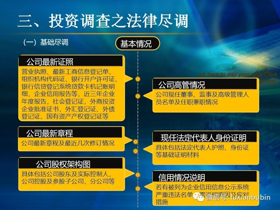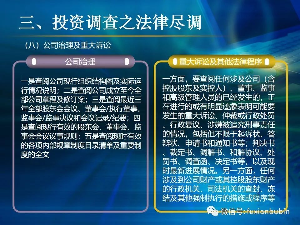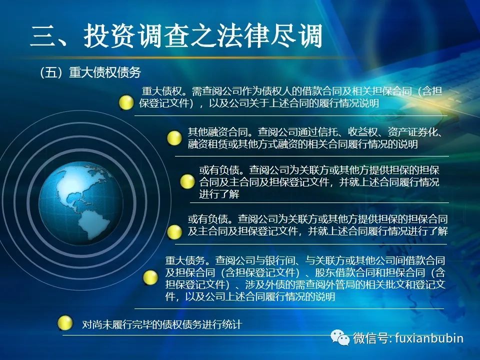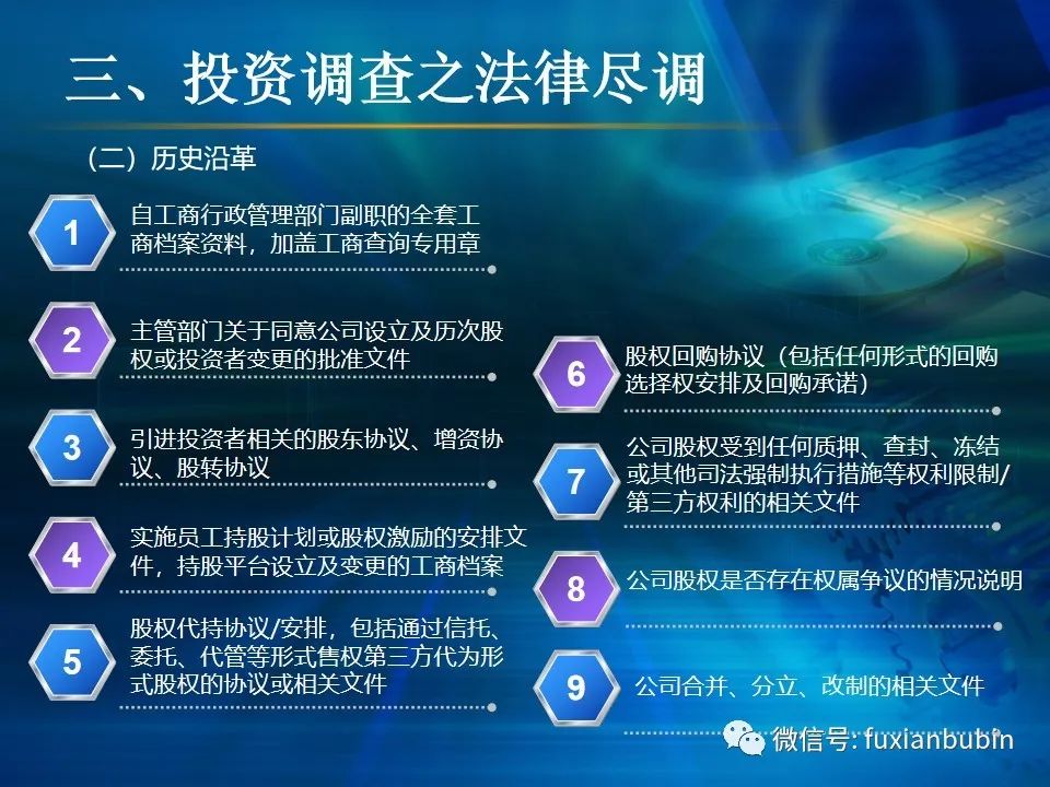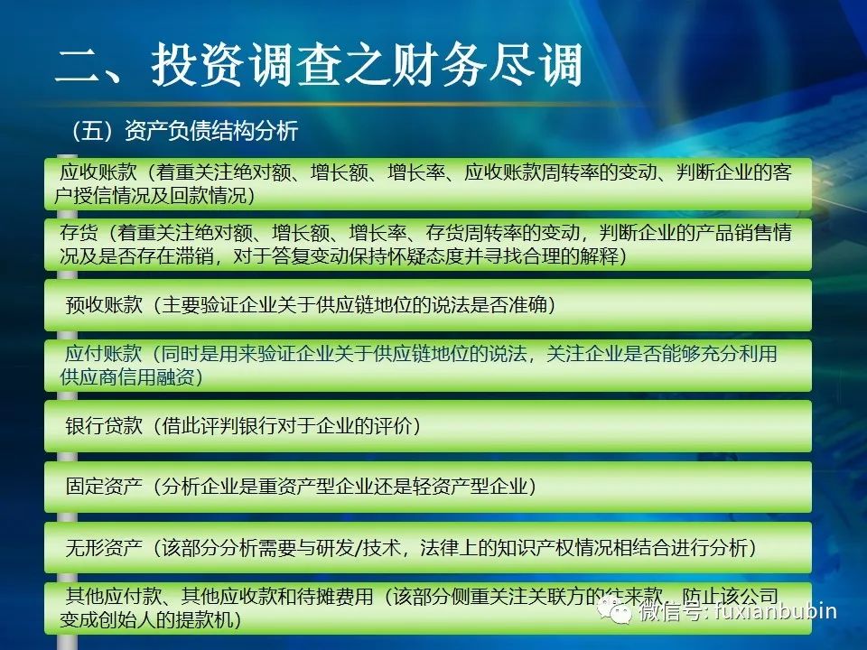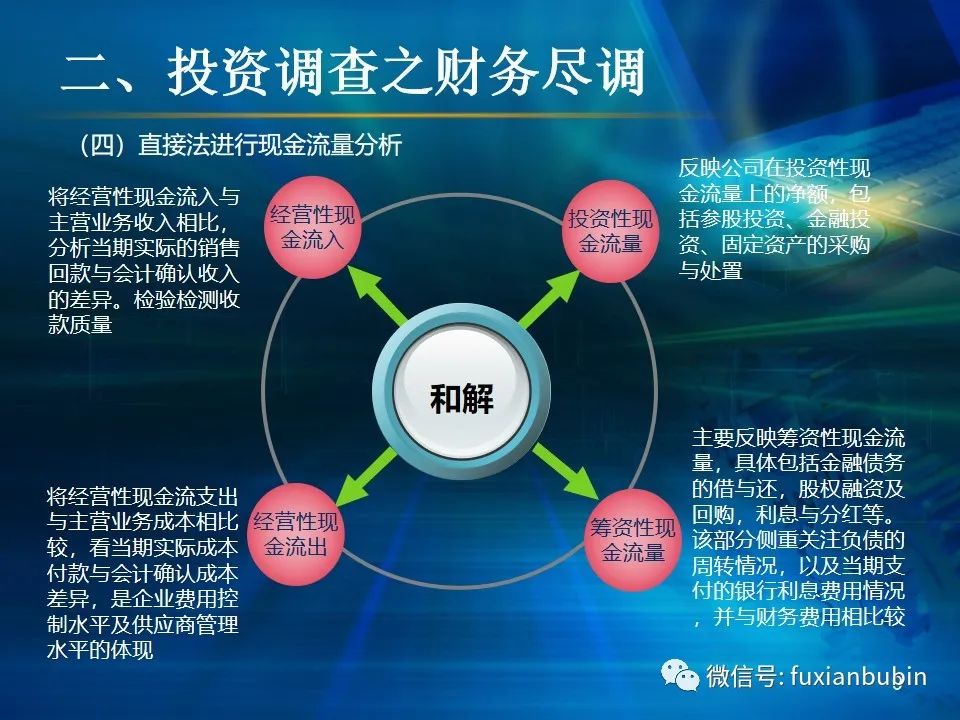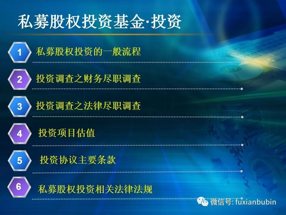 私募股權(quán)投資基金的投資工作,其業(yè)務(wù)流程主要圍繞投資決策開展,通常包括項(xiàng)目開發(fā)與篩選,初步盡職調(diào)查,項(xiàng)目立項(xiàng)、簽訂框架投資協(xié)議、盡職調(diào)查、投資決策、簽署投資協(xié)議、投資交割等主要環(huán)節(jié)。在這一過程中,財(cái)務(wù)盡調(diào)主要關(guān)注目標(biāo)公司的歷史財(cái)務(wù)業(yè)績的情況,并對未來財(cái)務(wù)狀況進(jìn)行合理預(yù)測。調(diào)查內(nèi)容包括企業(yè)的歷史經(jīng)營業(yè)績,未來盈利預(yù)測、營運(yùn)資金、融資結(jié)構(gòu)、資本性開支以及財(cái)務(wù)風(fēng)險(xiǎn)敏感度分析等。其作用在于為投資及整合方案設(shè)計(jì)、交易談判、投資決策提供支撐,進(jìn)而判斷投資是否符合戰(zhàn)略目標(biāo)及投資原則。法律盡職調(diào)查是對相關(guān)法律事務(wù)具有法律意義的背景資料進(jìn)行應(yīng)有的調(diào)查,使相關(guān)法律事務(wù)的處理建立在客觀、全面的信息基礎(chǔ)之上,以確保相關(guān)法律事務(wù)的處理能夠達(dá)到預(yù)期的結(jié)果,而不因相關(guān)信息在真實(shí)性、完整性、全面性、合法性等方面的原因影響預(yù)期目標(biāo)的實(shí)現(xiàn)。經(jīng)過財(cái)務(wù)盡調(diào)與法律盡調(diào),在股權(quán)投資之前,需要考慮該項(xiàng)投資的性質(zhì)、事實(shí)和背景,為之選擇恰當(dāng)?shù)墓乐捣椒ǎ⒔Y(jié)合市場參與者的假設(shè),采用合理的市場數(shù)據(jù)和參數(shù)對目標(biāo)公司進(jìn)行估值,明確目標(biāo)公司的公允價(jià)值。
