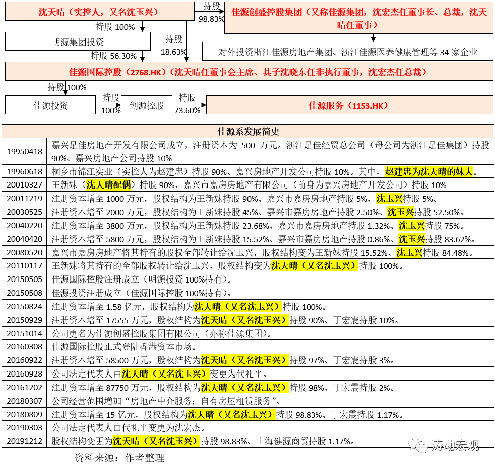 3、佳源系的核心人物為沈天晴(擔任佳源國際控股董事會主席)、沈宏杰(佳源創盛控股集團與佳源國際控股的總裁。