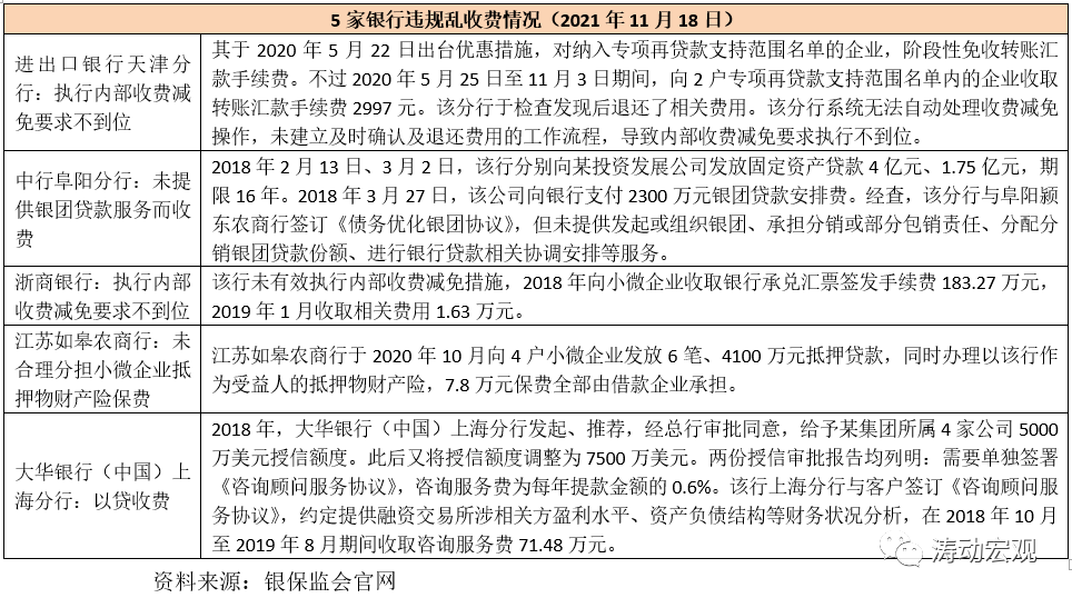 (一)2021年11月,點名通報5家銀行違規(guī)亂收費四大問題