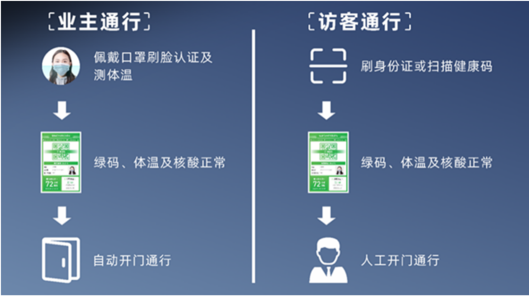 香梅花園通過智能化手段在人行通道部署了人臉識別設備,在疫情期間設備開啟口罩識別模式,在人員通行時無需摘取口罩,對于未帶口罩人員進行語音提醒,為疫情防控提供行之有效的方法。