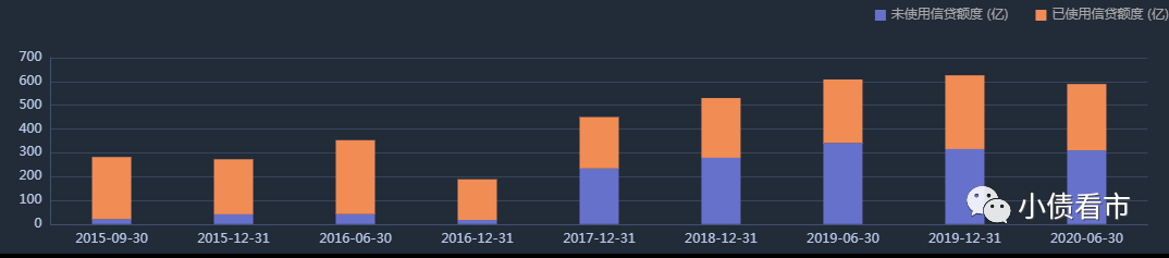 在備用資金方面,截至2020年6月末協信遠創授信總額為589.29億元,未使用授信額度310.17億元,可以看出財務彈性尚可。
