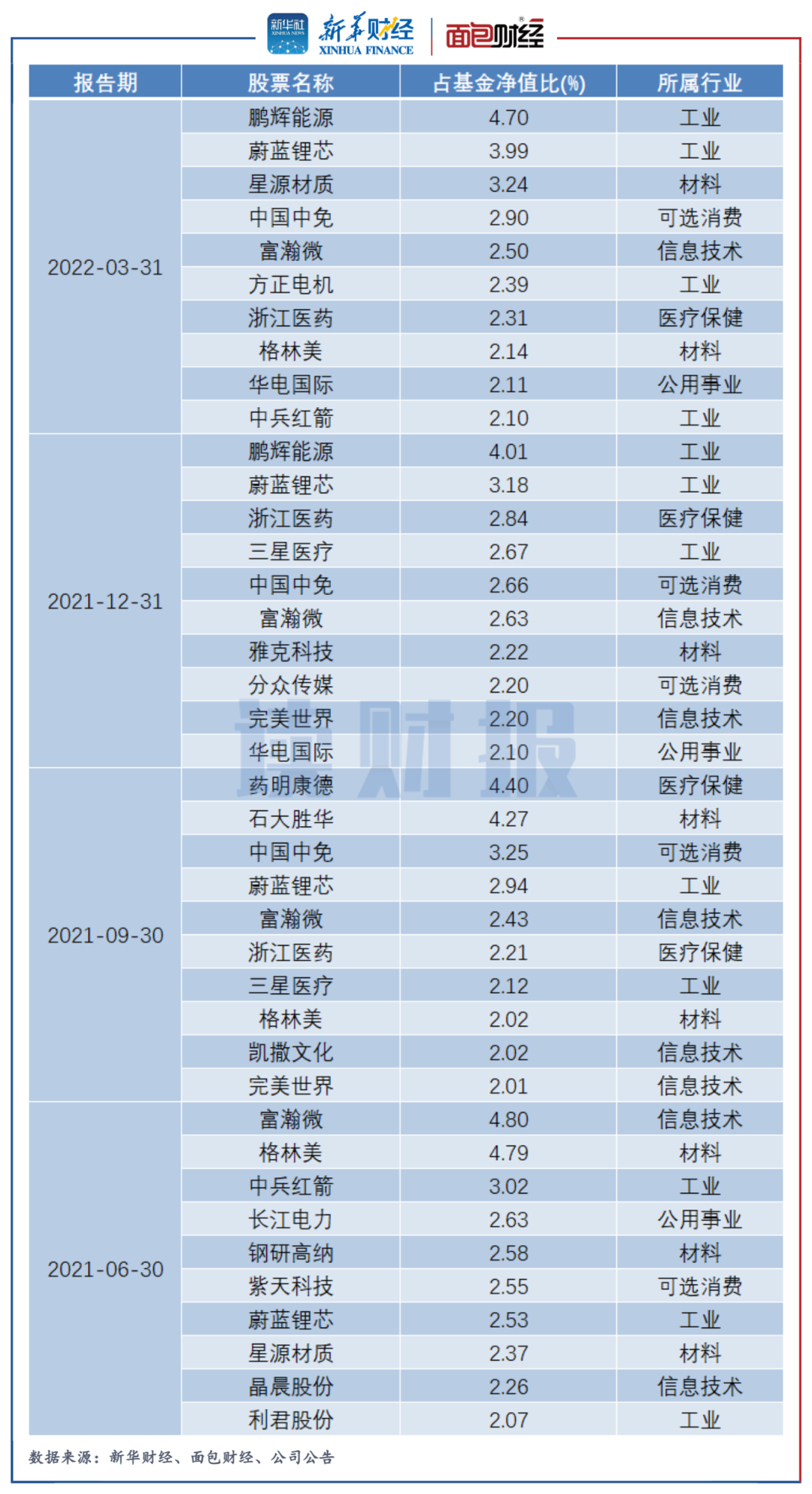 然而, 2022年一季度末基金持倉顯示,華安文體健康十大重倉股主要包括鵬輝能源、蔚藍(lán)鋰芯、星源材質(zhì)等新能源、芯片股,而與文體健康相關(guān)的,目前十大重倉里只有浙江醫(yī)藥。根據(jù)基金一季報,文化、體育和娛樂業(yè)股票占華安文體健康資產(chǎn)凈值比例僅為0.60%。