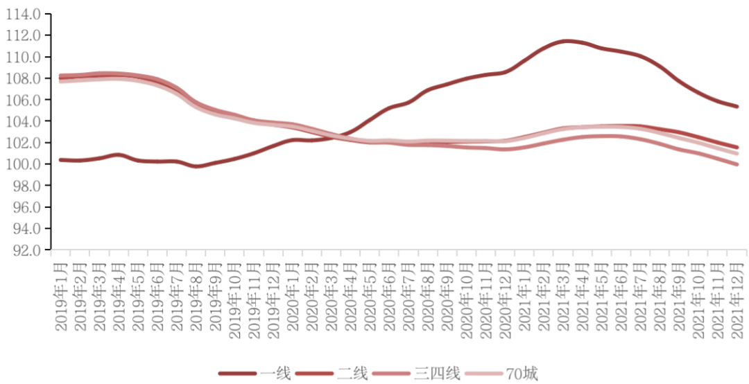 從房價同比漲幅來看,12月70個大中城市新建商品住宅和二手住宅價格同比分別上漲2%和1%,其中二線城市分別上漲2.8%和1.5%。多個城市出臺二手房交易指導價后,2021年二手住宅房價遭遇較大降幅。