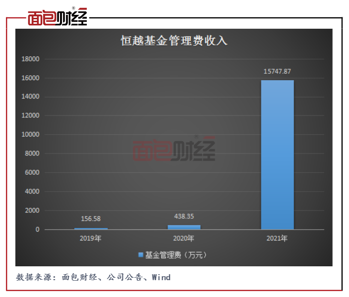 隨著管理規(guī)模的迅速擴張,恒越基金的管理費用也水漲船高。根據(jù)年報數(shù)據(jù),恒越基金2021年管理費收入合計達1.57億元,而2020年的管理費收入僅438萬元。
