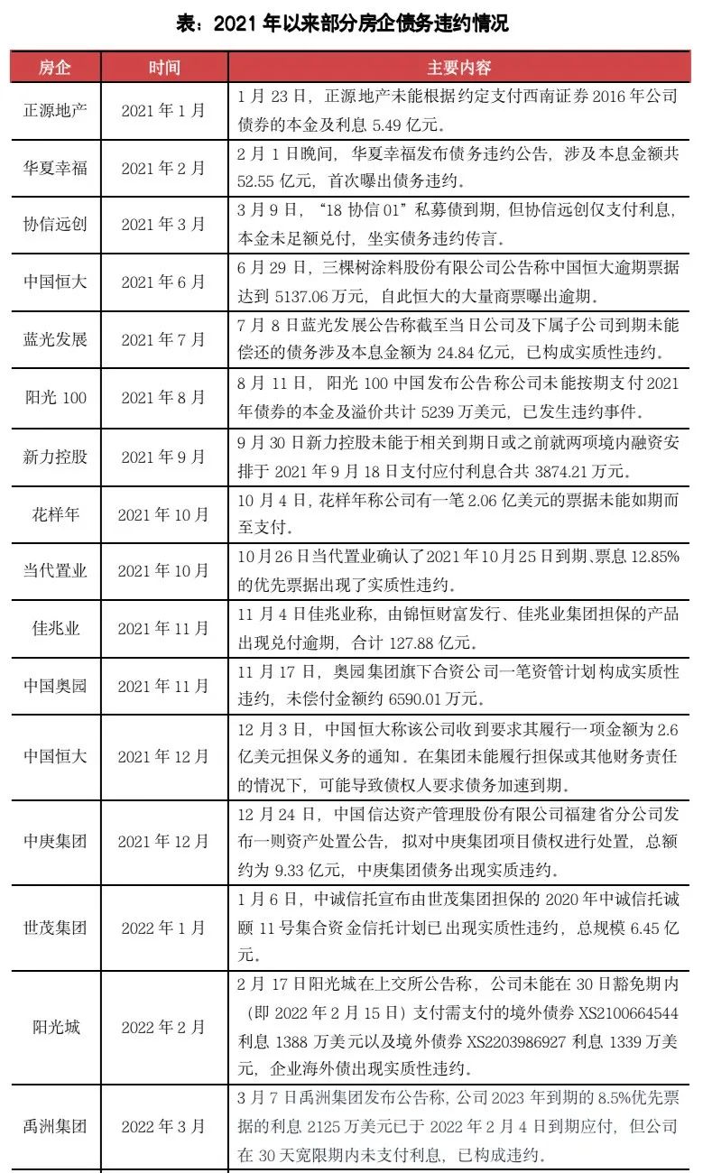 在債務違約方面,本月龍頭房企融創中國和北京房企鴻坤偉業分別發布公告稱未能按期支付旗下境外票據利息,構成了實質性違約,融創也是繼恒大之后又一家出現美元債違約的龍頭房企。整體來看,當前還有不少房企存在流動性問題,因此未來仍有可能有更多房企曝出債務違約事件,仍需要行業注意。