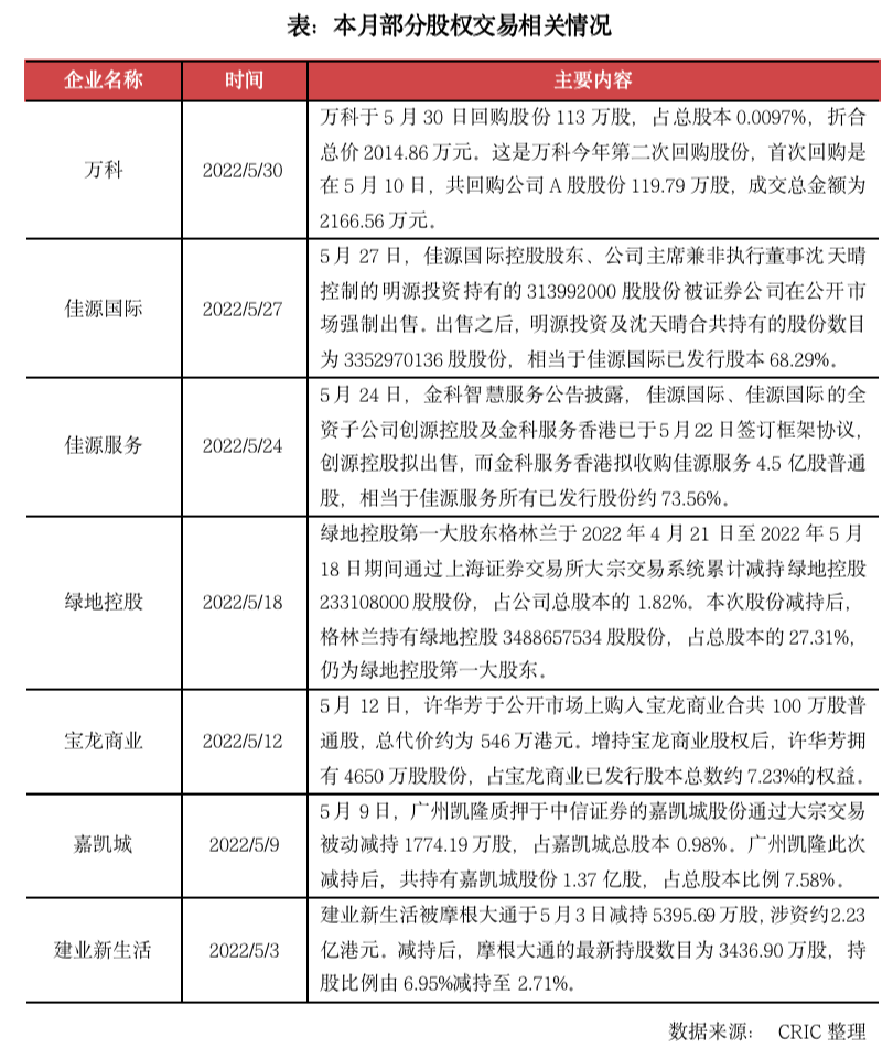 03.股權變動:佳源國際、嘉凱城股東被動減持,金科收購佳源服務股權